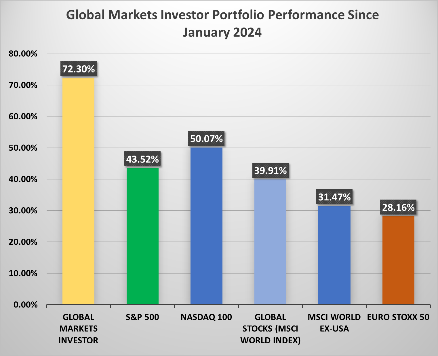 Since January 2024, my portfolio has returned +72.30%, beating the S&P 500 by 28.78 percentage points.