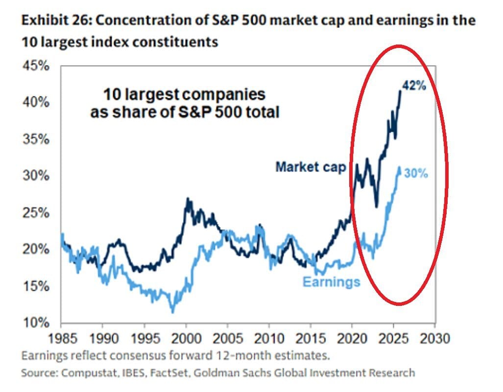 The top 10 stocks now account for 42% of the S&P 500's market cap