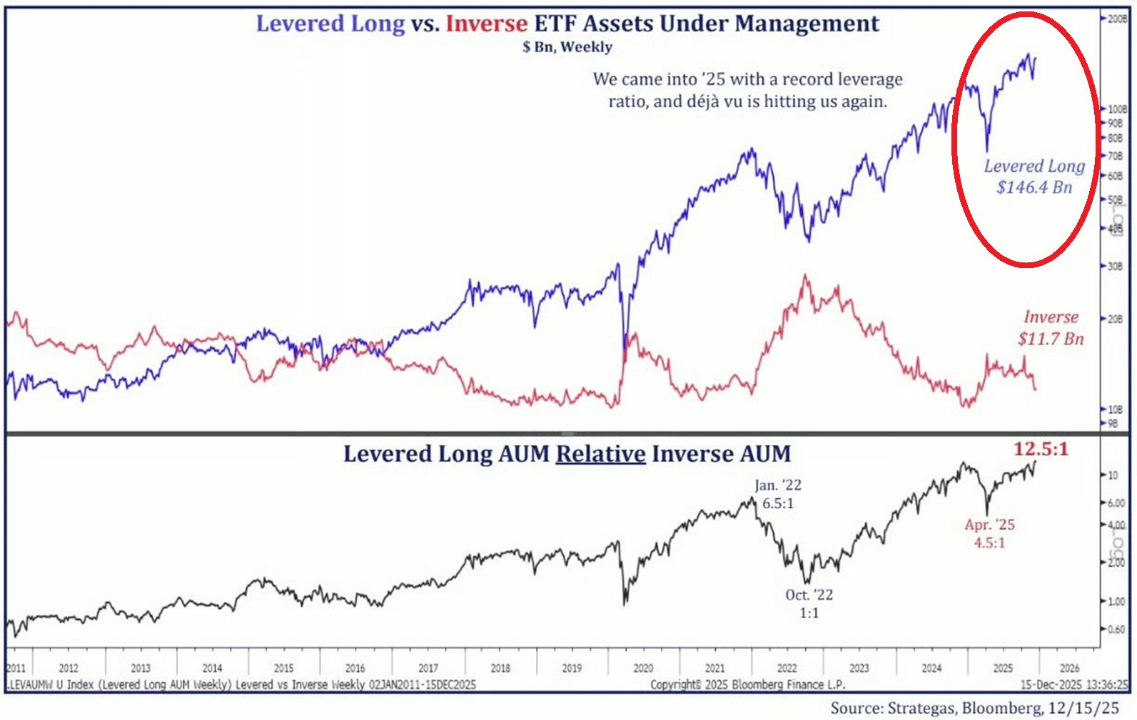 Nearly a record ~$146 billion is now parked in leveraged bullish funds, versus just $12 billion in inverse ETFs.