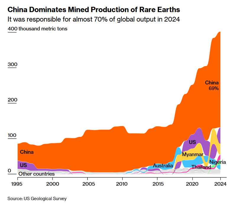 Meanwhile, China has suspended its ban on approving exports of “dual-use items” tied to 3 rare earths (gallium, germanium, antimony), and super-hard materials to the US, the Commerce Ministry said Sunday.