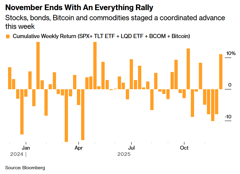 Markets rallied last week mostly on the back of a higher chance that the Fed will cut rates in December, after additional data confirmed labor-market weakness, as well as growing confidence in AI following Google's new model release.